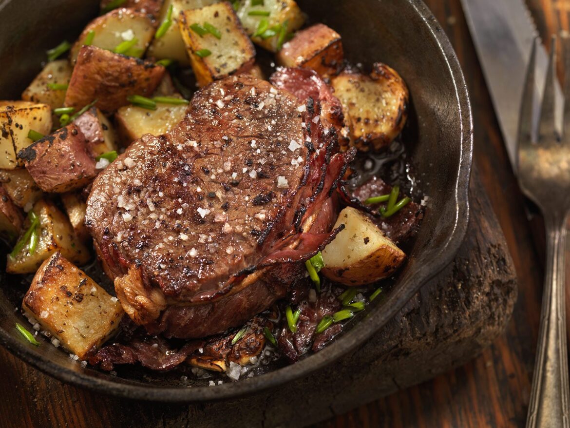 Bacon Wrapped Steak Fillets Sautéed in Garlic Butter